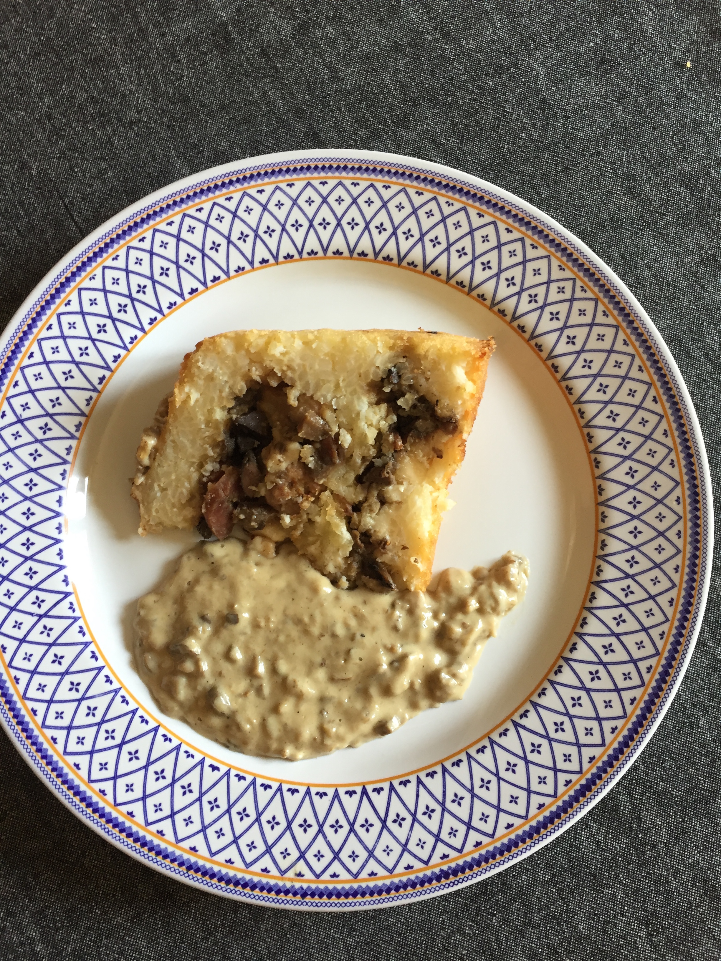 Versione bianca e personale del sartù di riso, con ragù di rigaglie al caffè, porcini, polpettine e formaggi. Una variante originale proposta in occasione dell'MTChallenge.