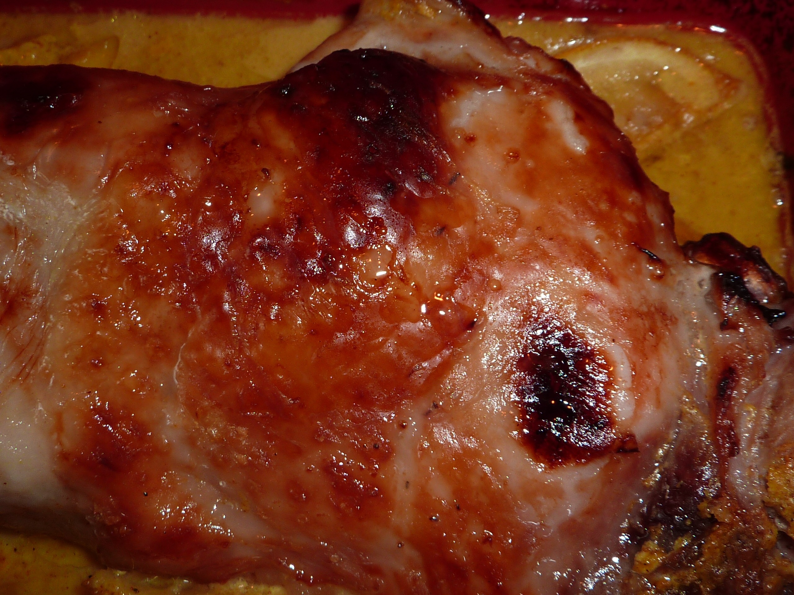 Coscia di tacchino caramellata con la sua salsa leggera al limone