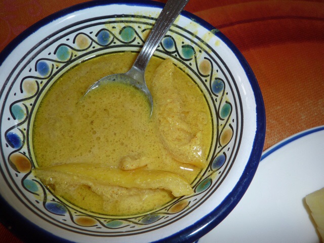 Frullare ottenendo una crema liscia che si metterà in un largo piatto da portata, fondo.