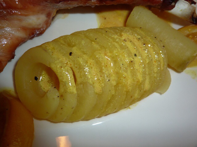 l'ho servita con patate cotte al vapore (pelate e tagliate con il 'pelamela") D:Do