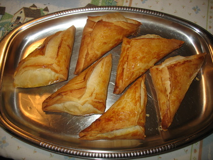 Tagliare la pasta fillo in rettangoli di ca cm. 20 x 30 (io l'ho trovata già tagliata di circa queste dimensioni) . Per evitare che la pasta si asciughi durante la preparazione tenerla nella sua confezione coperta da un panno umido.