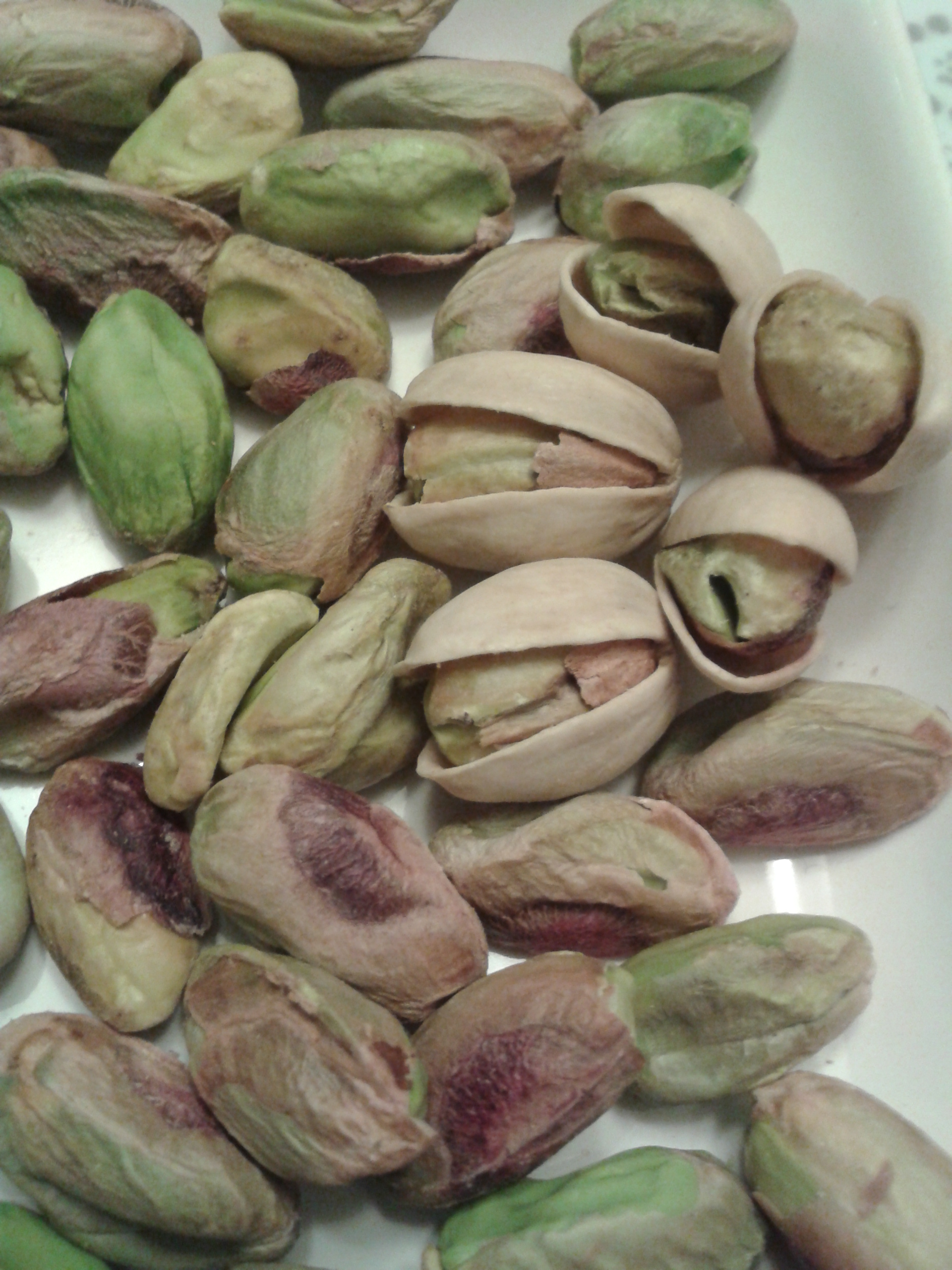 Unire ad una parte dei pistacchi un cucchiaino di buccia d’arancia tritata.