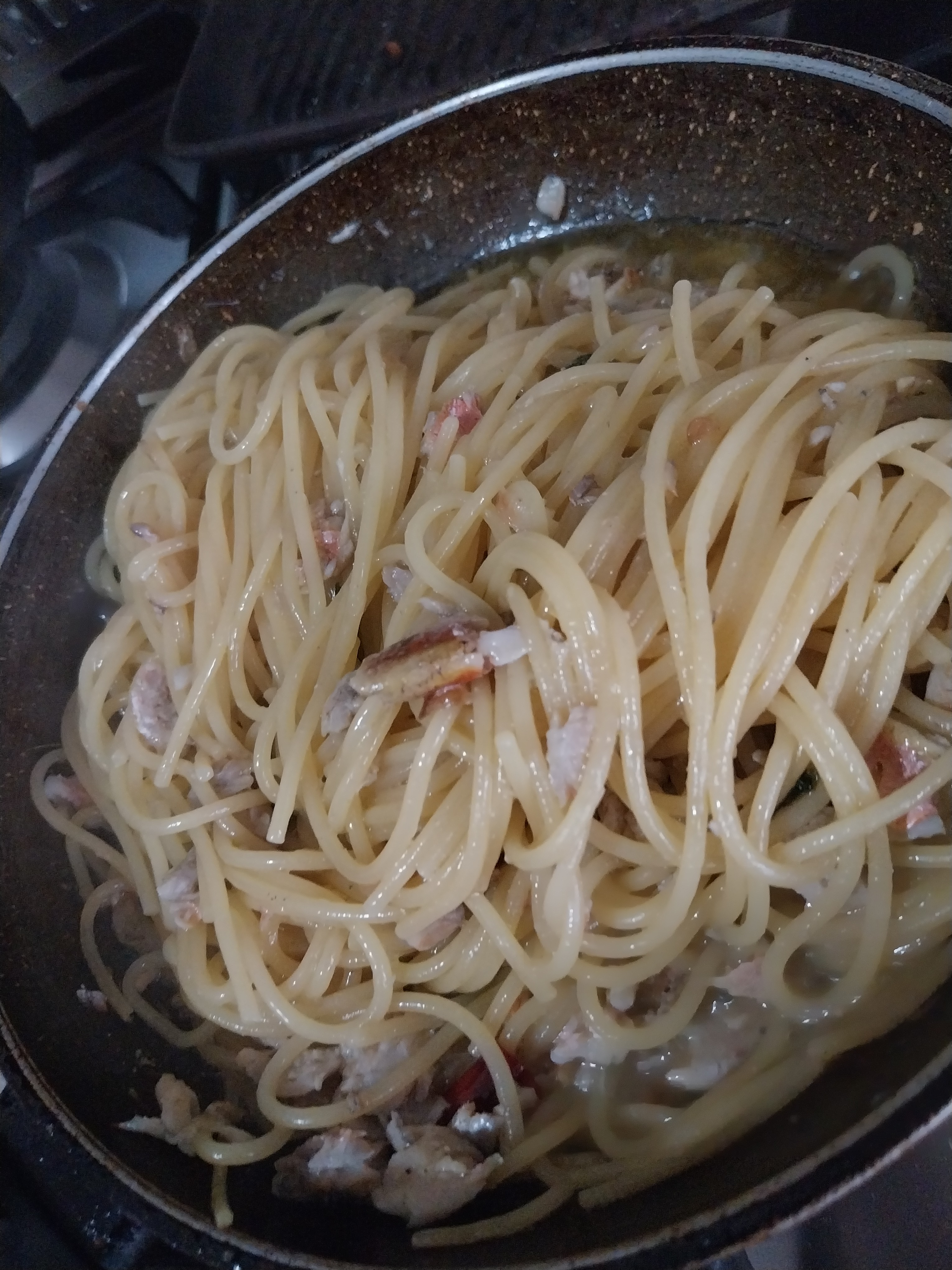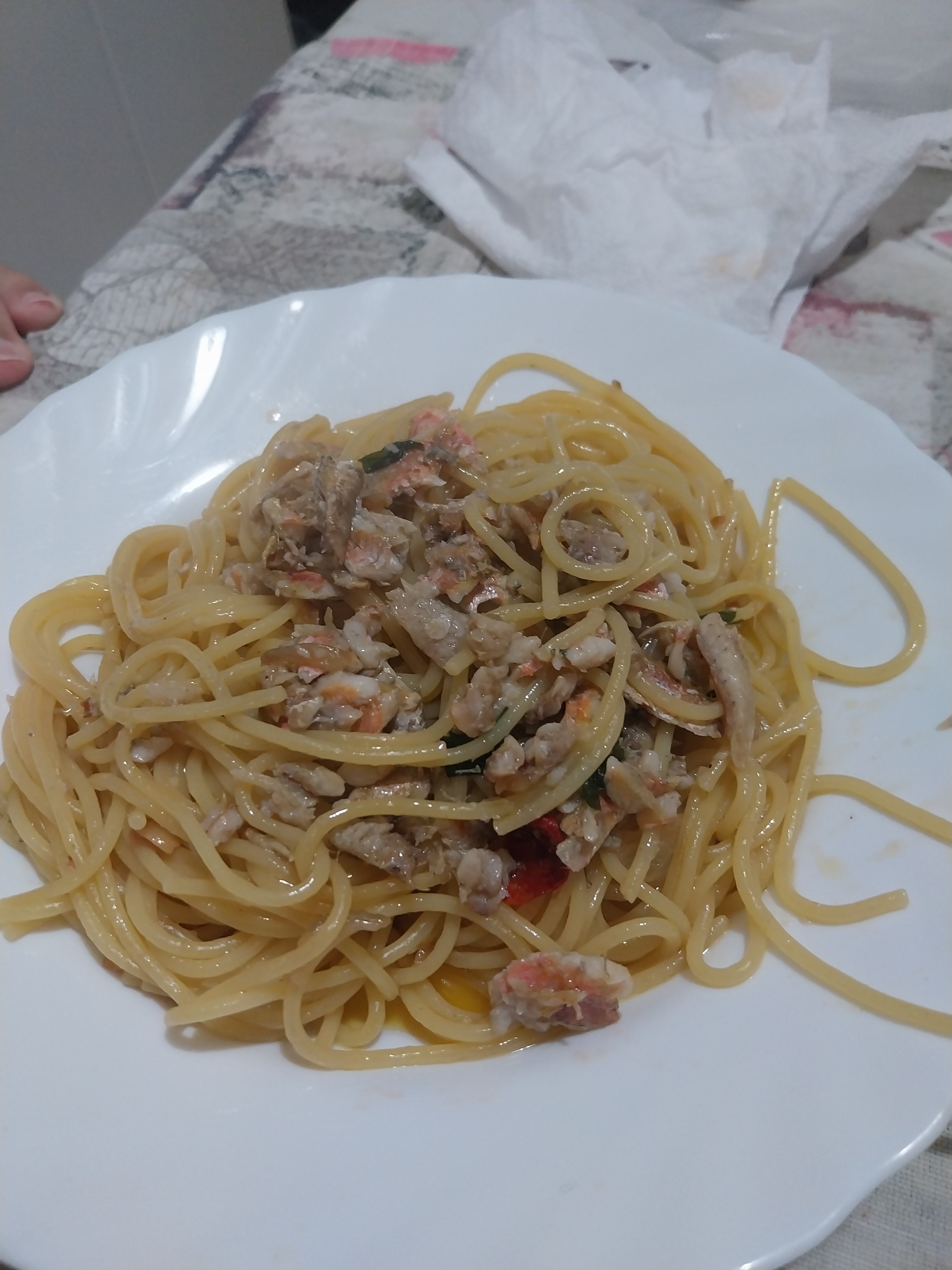 Ieri ho fatto questi spaghettini con le triglie, sono ancora più buoni con le bavette, ma all'ultimo minuto mi sono accorta di averle finite.