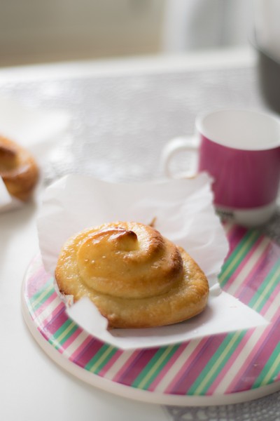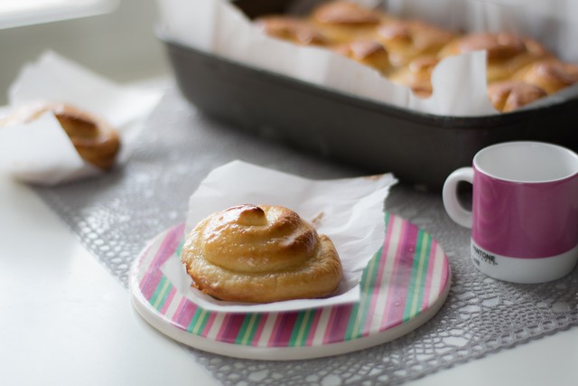 Durante la cottura, preparare lo sciroppo: far bollire l’acqua e lo zucchero. Per ottenere l’aspetto lucido, spennellare con lo sciroppo le brioche appena uscite dal forno. Far freddare.