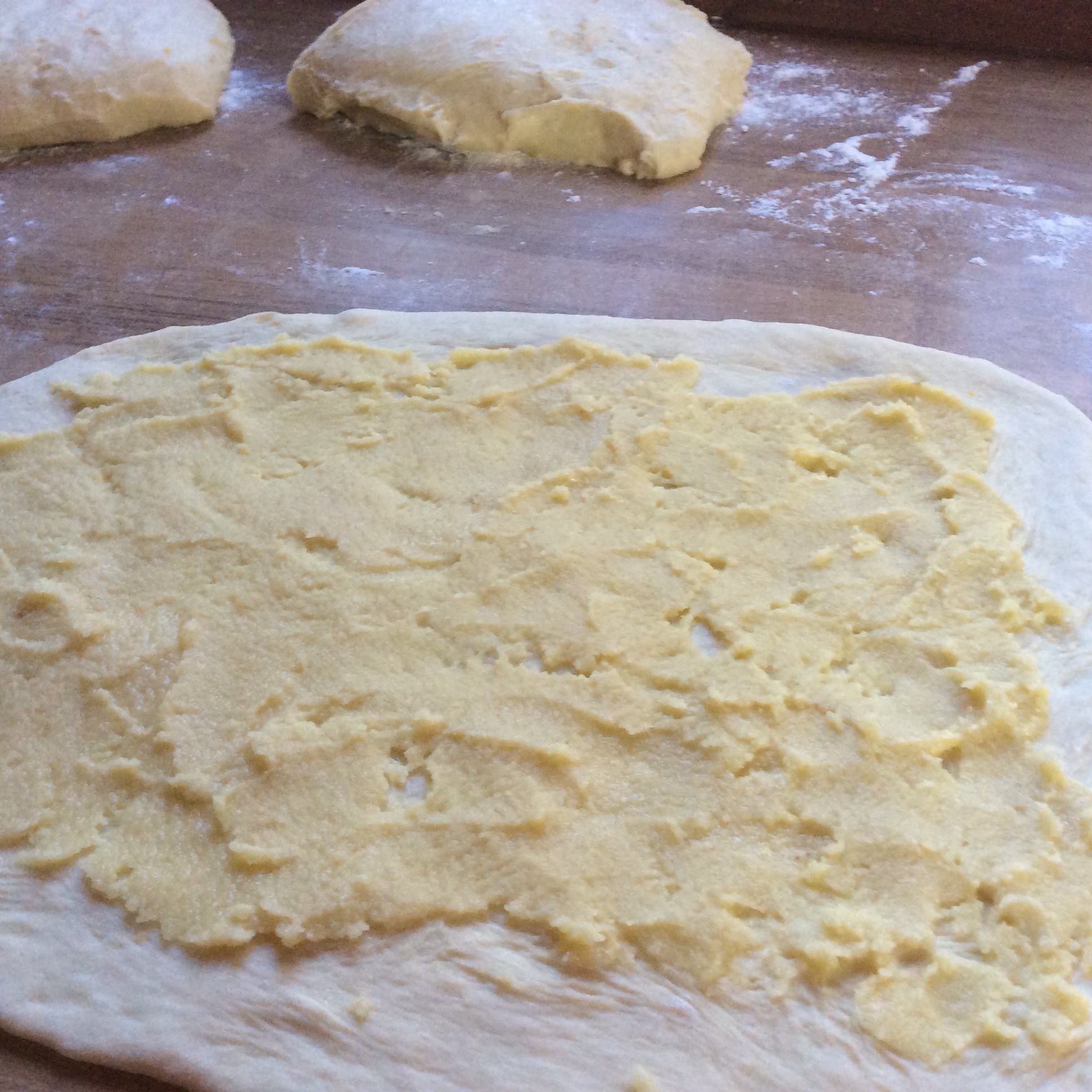Riprendere l’impasto, dividerlo in pezzi di 400 g e stenderli in rettangoli di 4 mm di spessore.