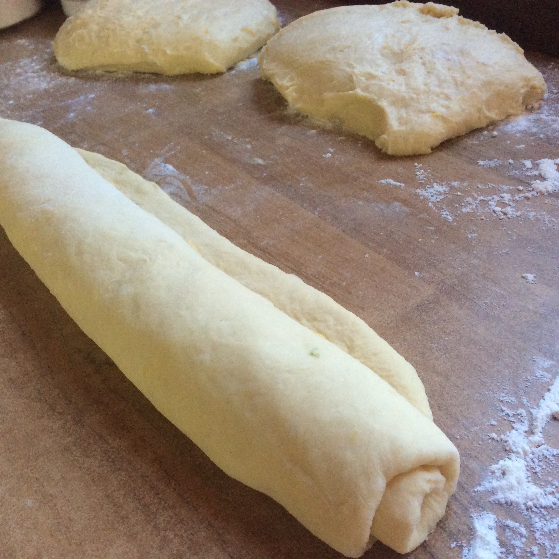 A questo punto, se si usa tutto il lievito di birra indicato, si può far lievitare l’impasto per un’ora a temperatura ambiente. Io ho ridotto della metà e messo in frigo per una notte, coperto da pellicola.