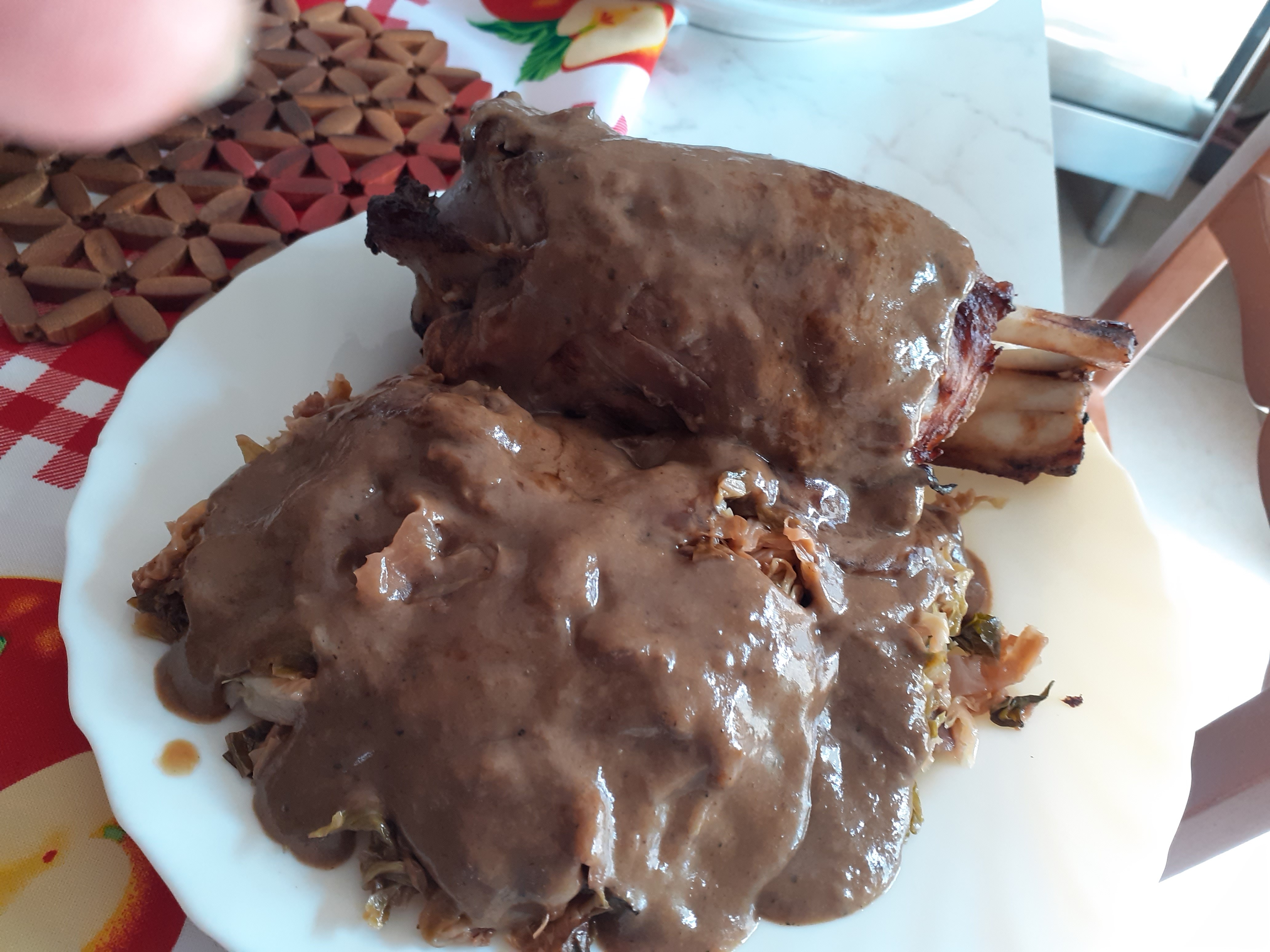 Preparare i piatti per i commensali: in ogni piatto mettere delle verzo, di gianco una porzione di stinco e irrorare con la sua salsina, servire subito.