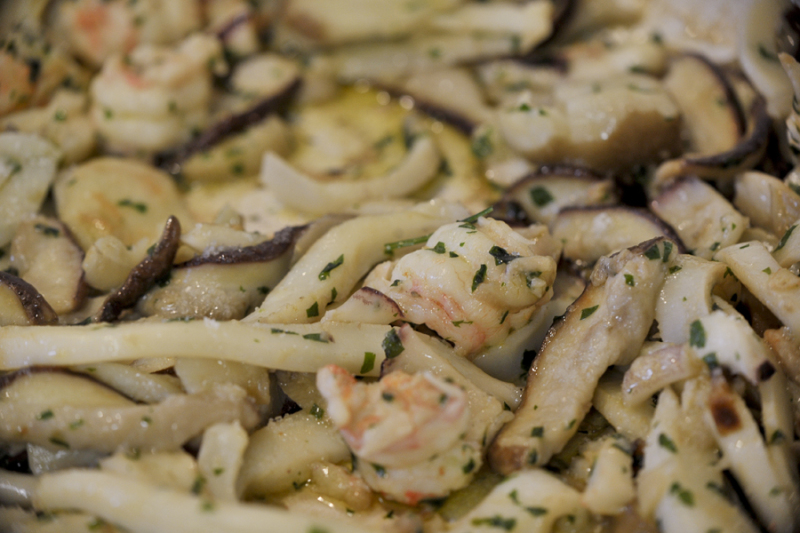 Fase 4Preparo il ragout di pesce mentre riposa la pasta: