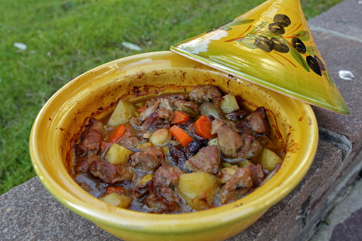 Tajine di agnello o capretto alle prugne ed uvette