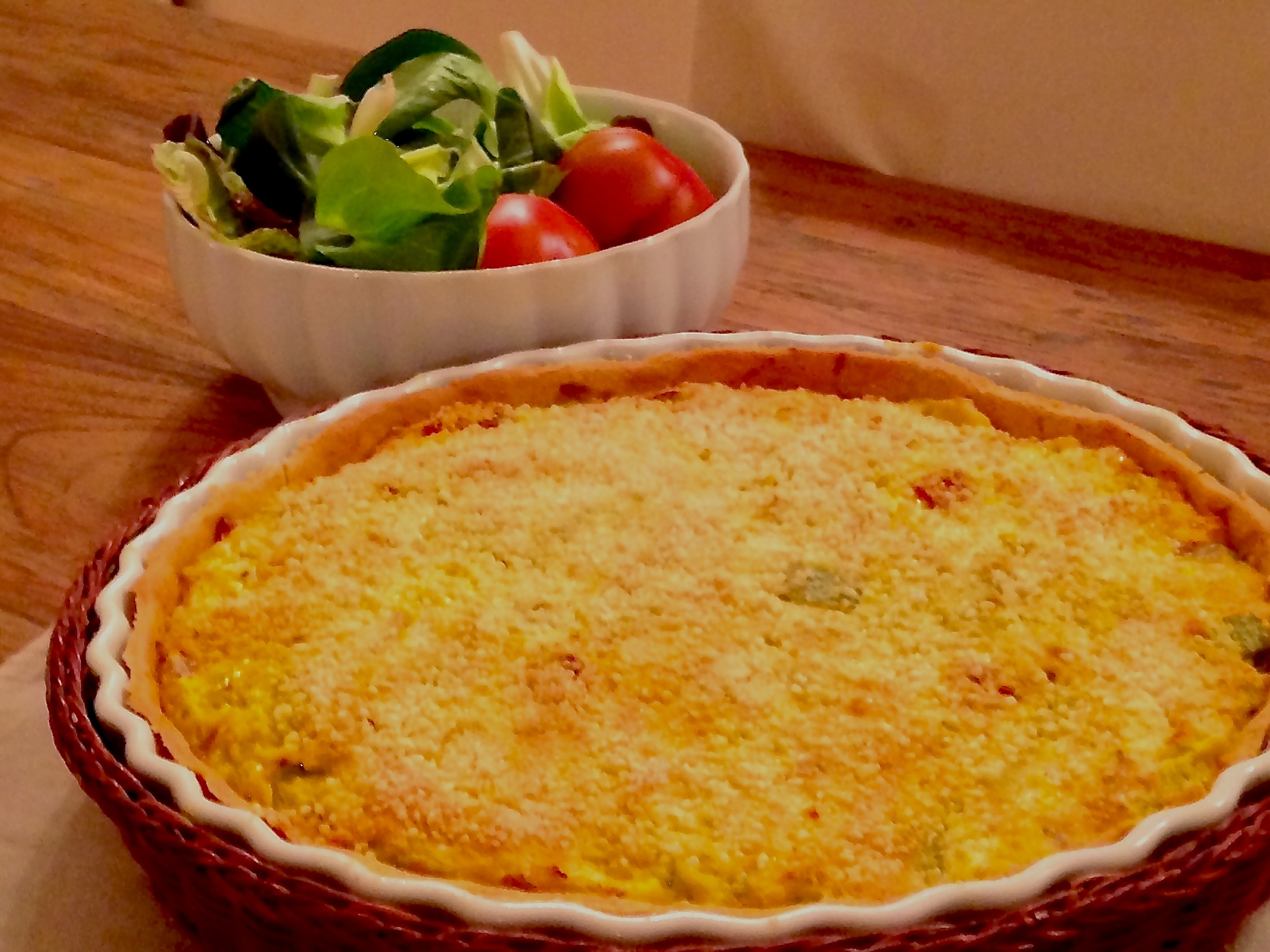 - Unire in una ciotola i porri, la salsiccia rosolata e la crema di uova e ricotta. Mescolare bene e versare sulla base di brisée cotta.