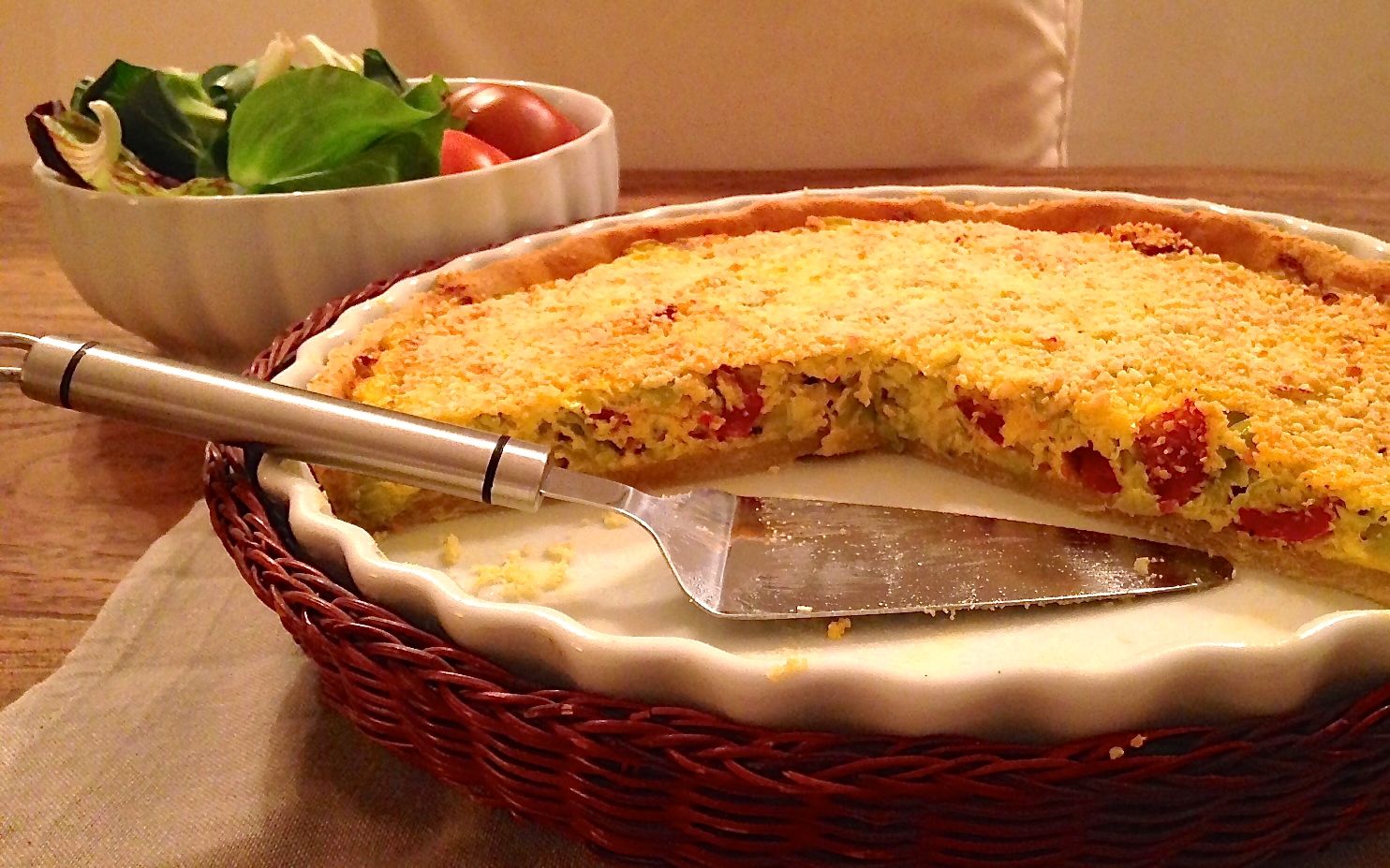 Una torta salata ricca di sapore che unisce ingredienti regionali italiani in una base francese: la brisée di Michel Roux. Perfetta da gustare con un'insalata fresca.