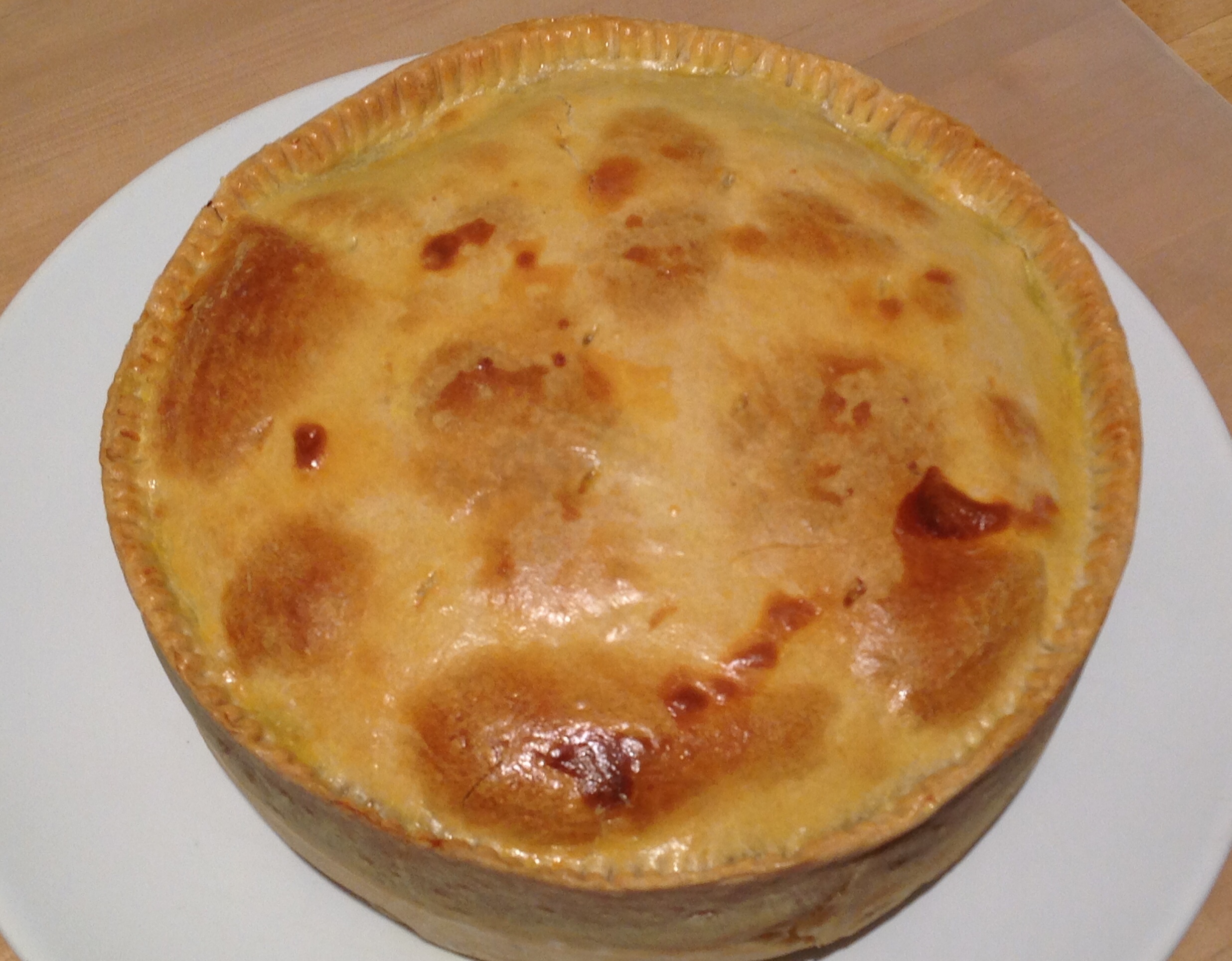 Versare la pasta, aggiumgere a fiocchetti il resto del burro , spianare l’altra pasta e ricoprire il timballo chiudendo bene i bordi, pareggiandoli. Cuocere in forno già caldo a 180°