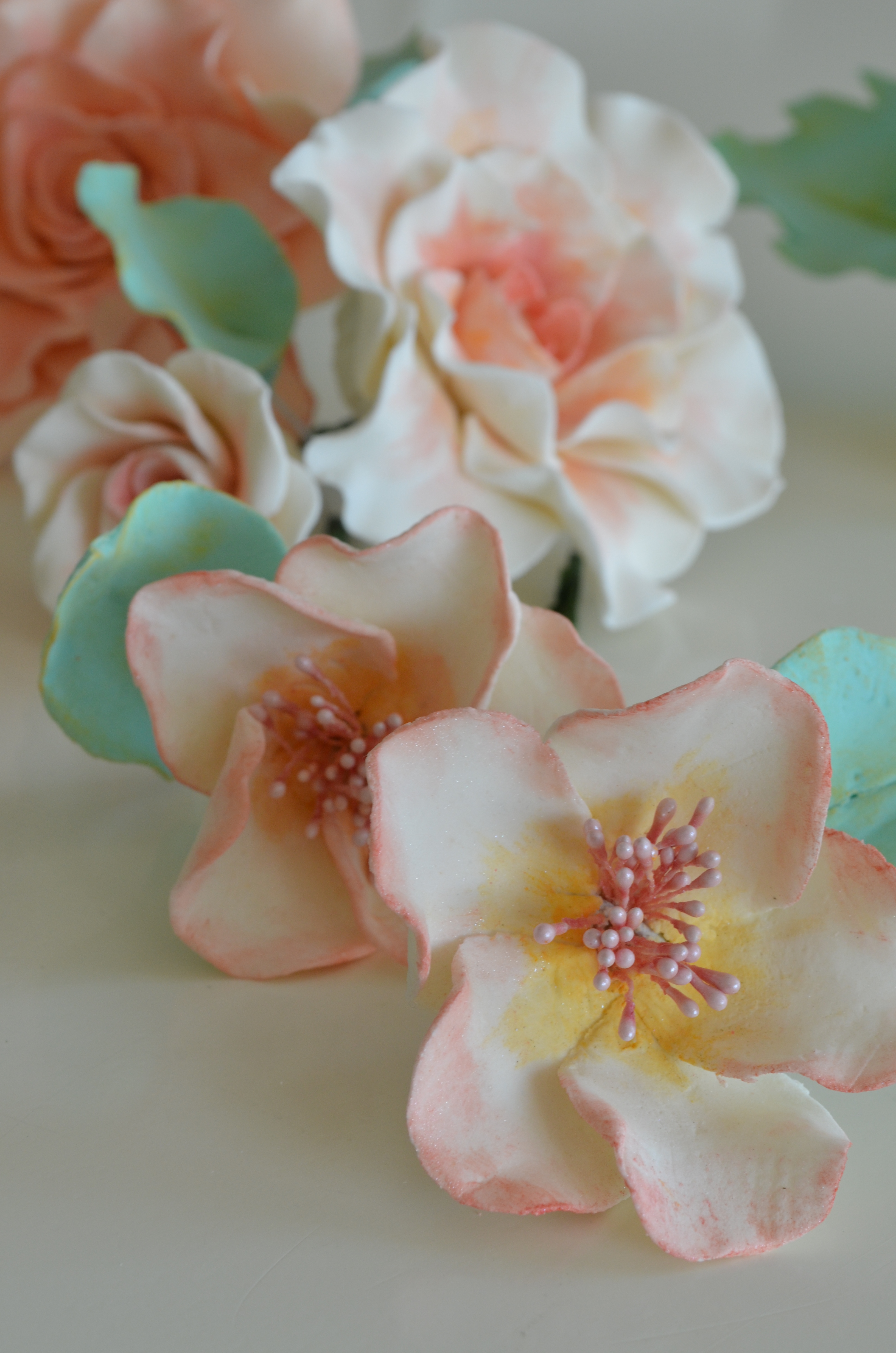 In tre volte ho formato tre rose grandi,due piccole e due fiorellini.Il quarto giorno ho rifinito con del colore alimentare in polvere.Il tutto in 1 ora,non di piu'.