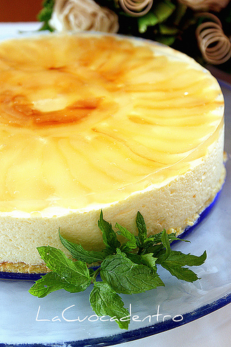 Versare la gelatina su tutta la superficie, trasferire la torta in frigo fino a completo rassodamento.