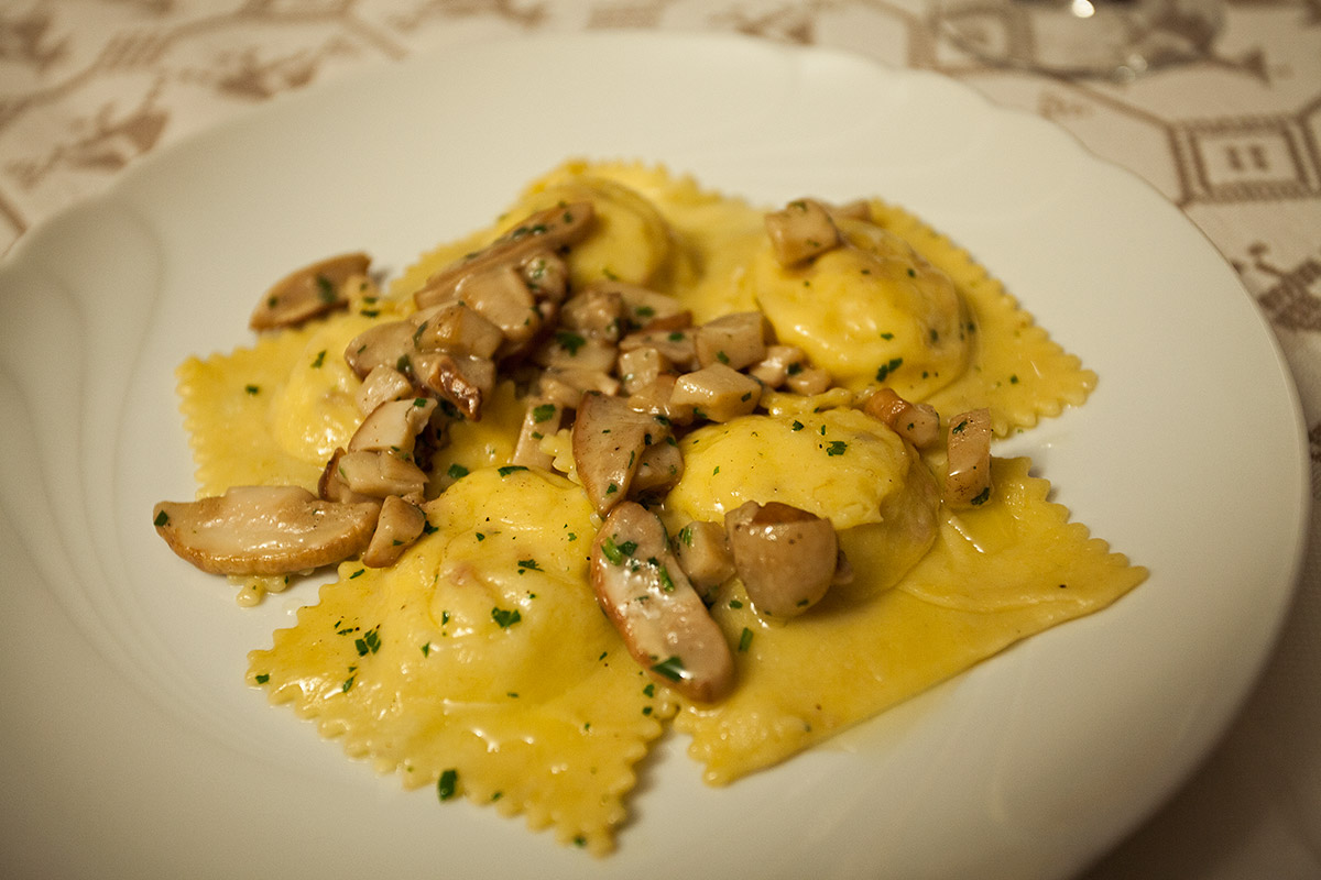 Tortelli di patate con ragout di porcini x4