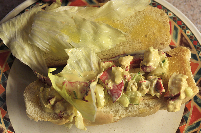 quindi ho assemblato il panino con la polpa dell'astice condita e una foglia di lattuga