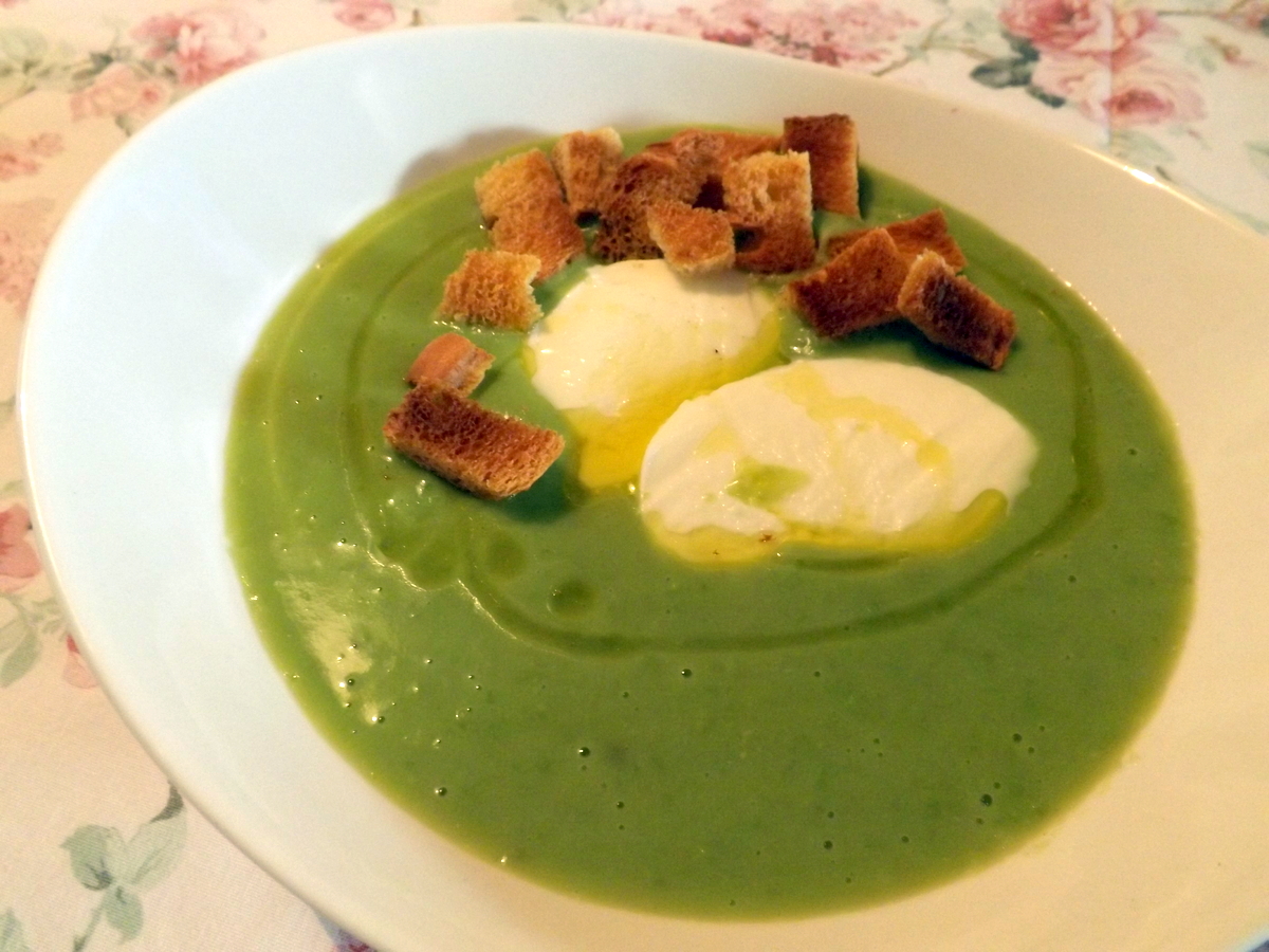 Metterli nel blender con le foglie di menta e brodo.Frullare finche’ non otterrete una crema non granulosa.Aggiungere , panna , tabasco, pepe.frullare ancora.