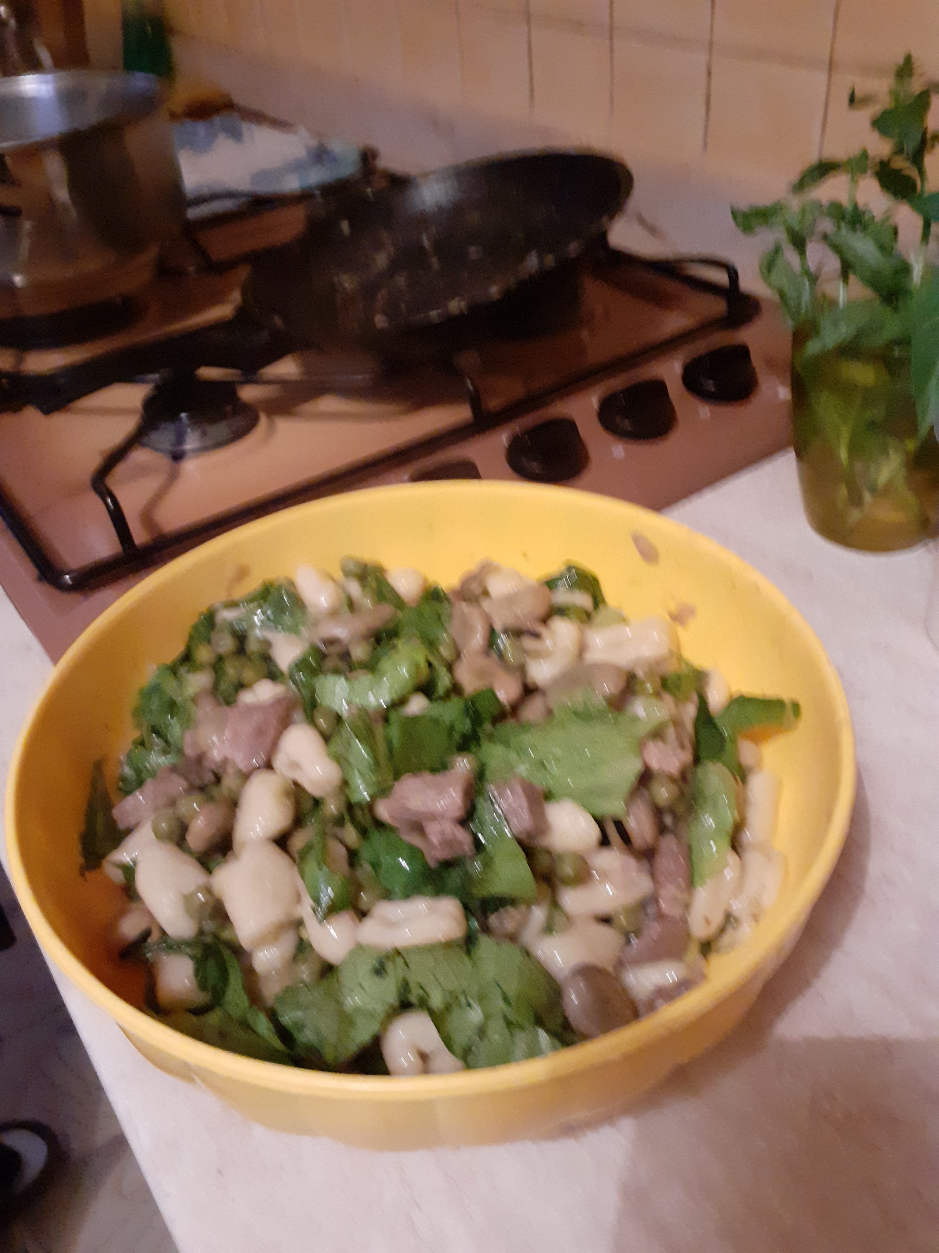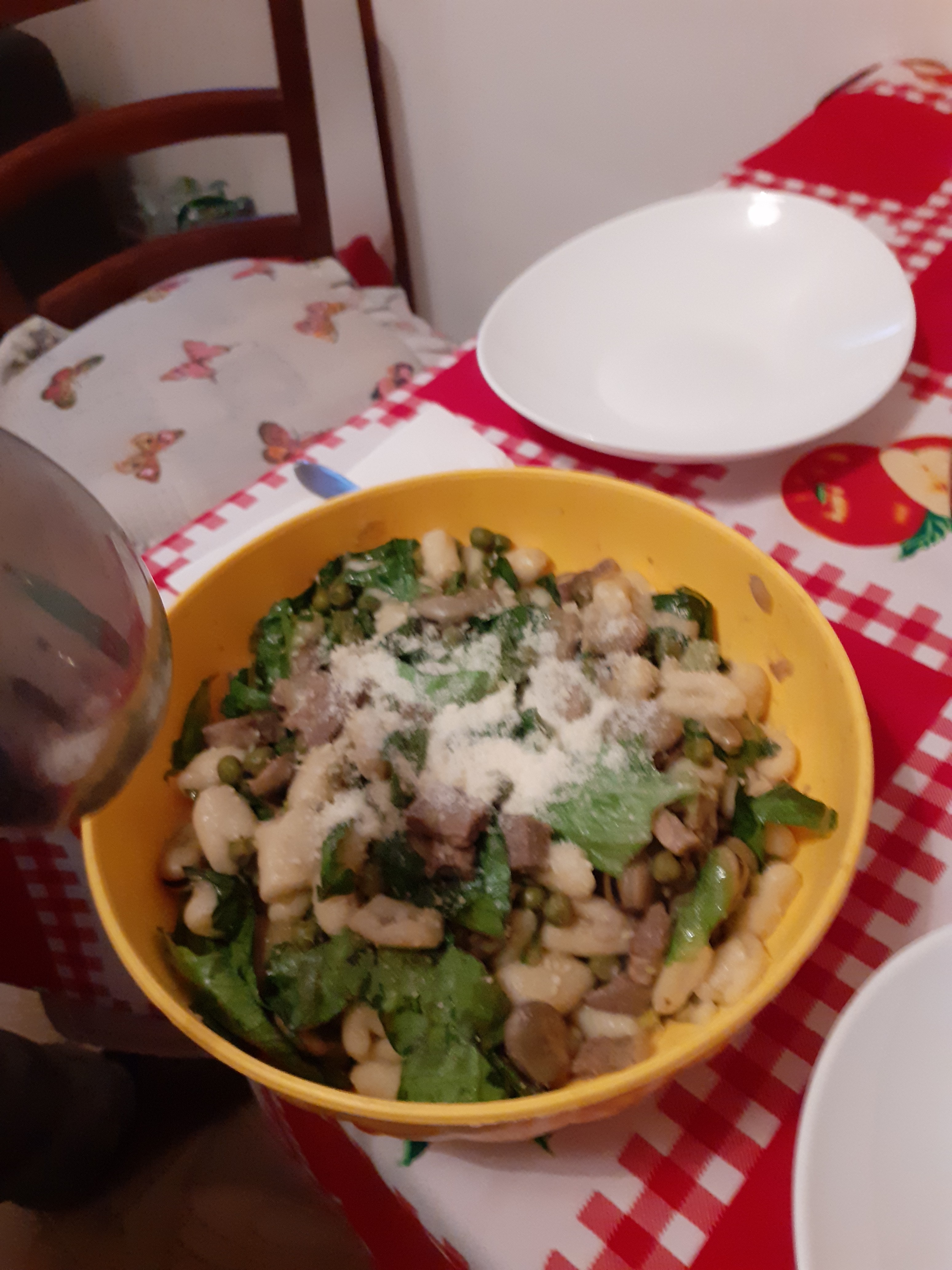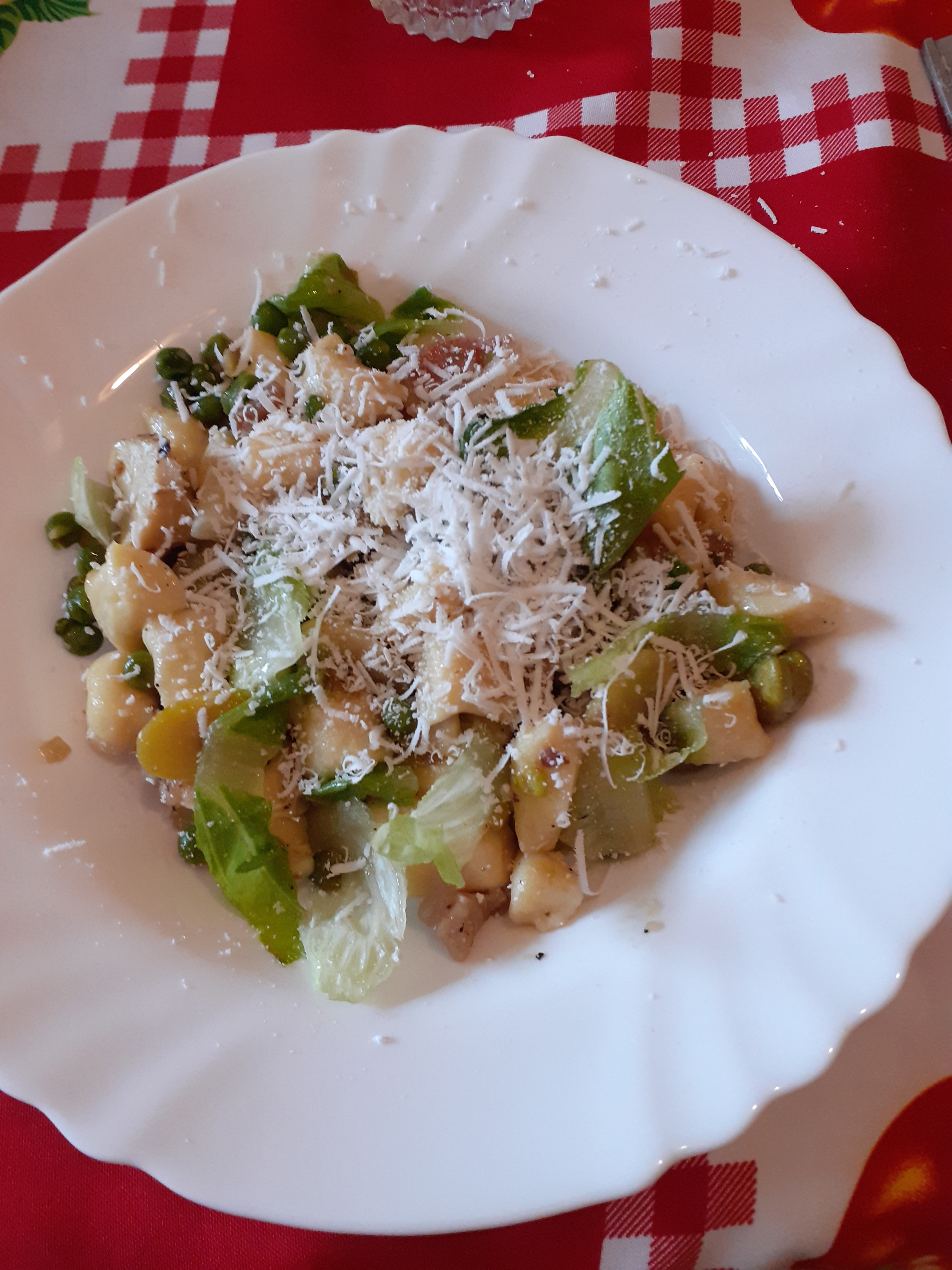 siccome domenica ho trovato le fave per i piselli ci vuole un altro po ho fatto gli gnocchi di patate stamane ma almeno un piatto che sa di primavera come la giornata di oggi
