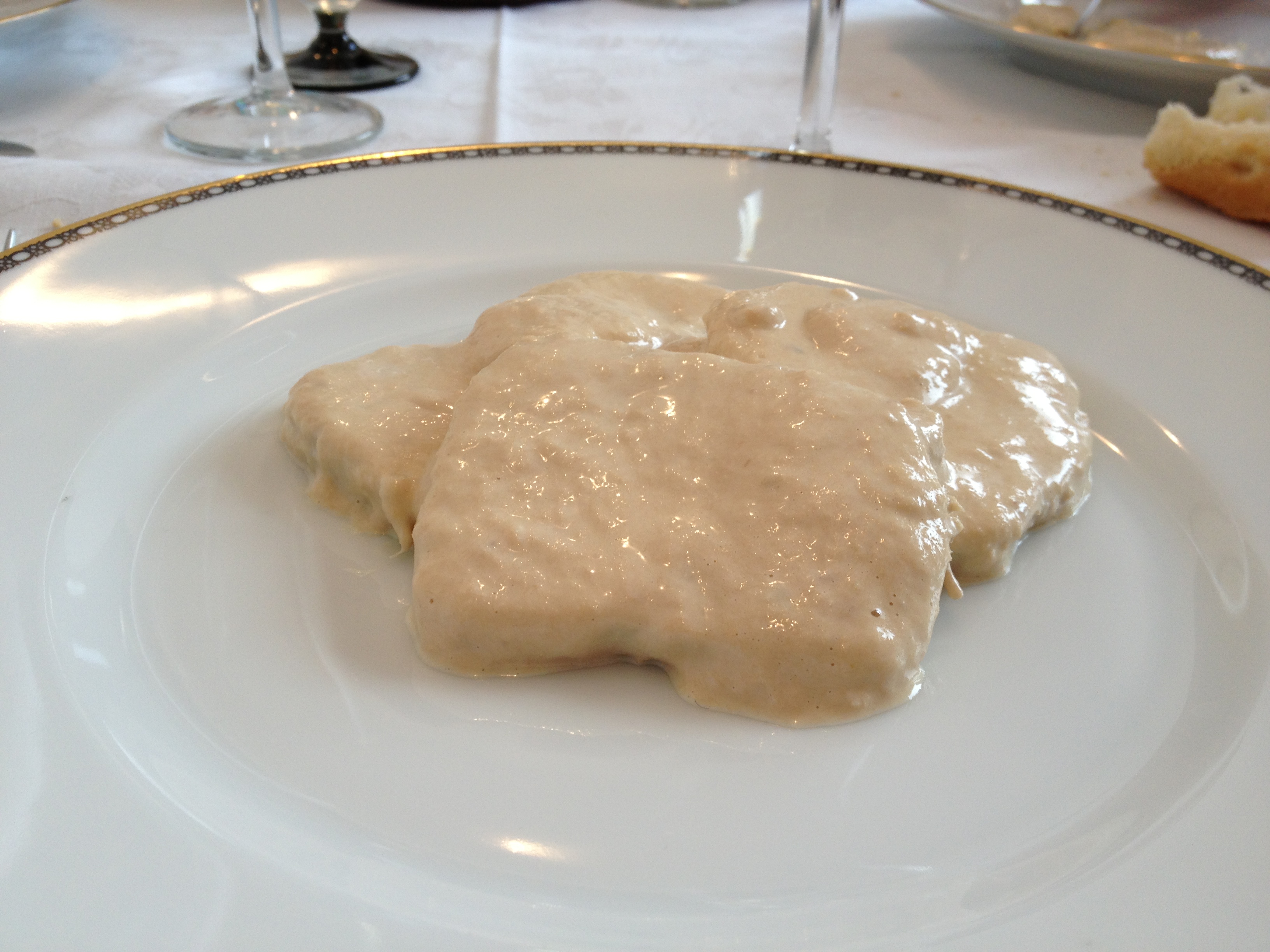 Stendere un paio di cucchiai di salsa tonnata sul piatto e poi affettare sottilmente il magatello. Fare 2 o 3 strati.