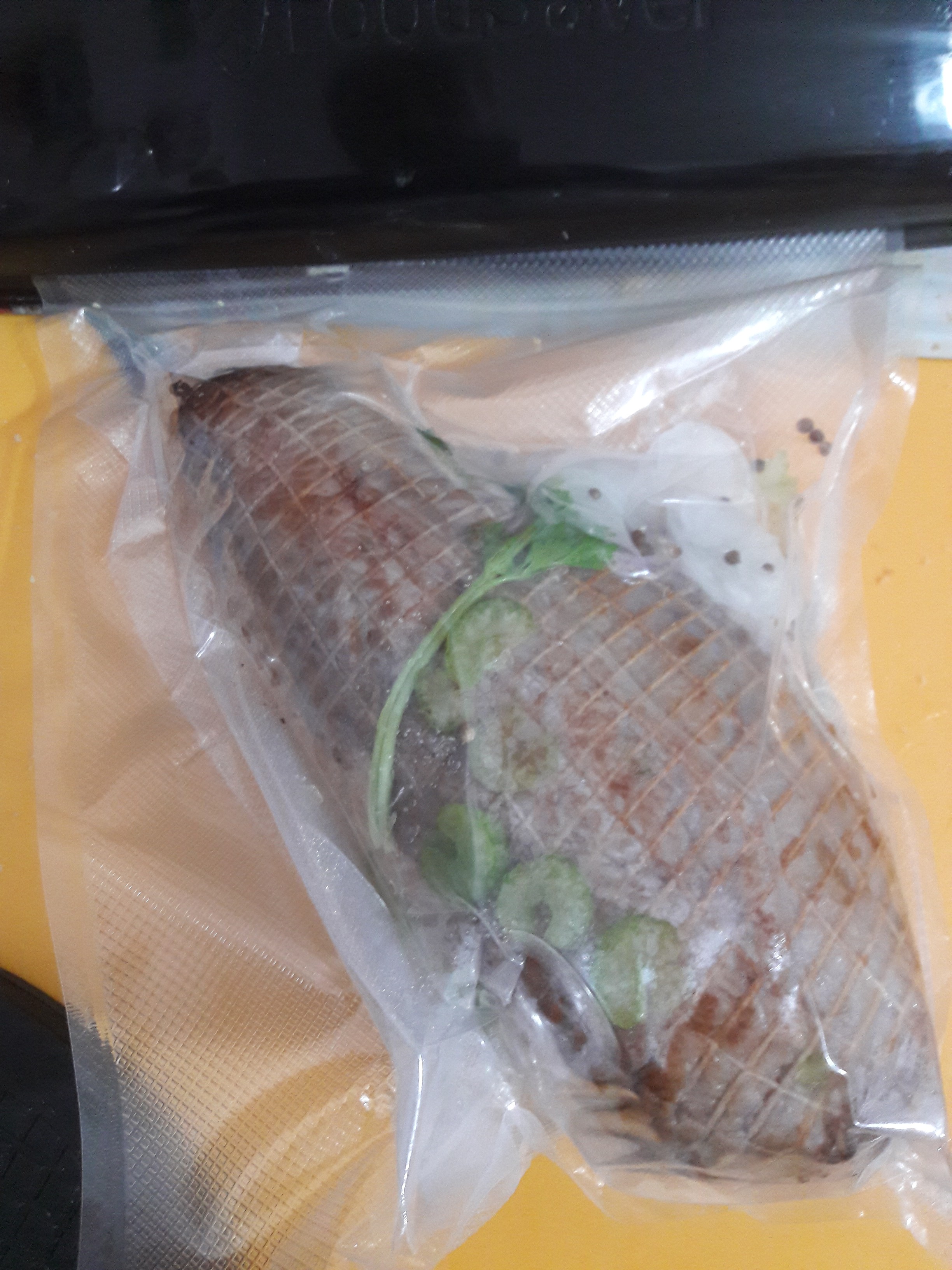 Chiudere il sacchetto e infilarlo in un altro sacchetto per sottovuoto e poi togliere l'aria come previsto da macchina per sottovuoto.